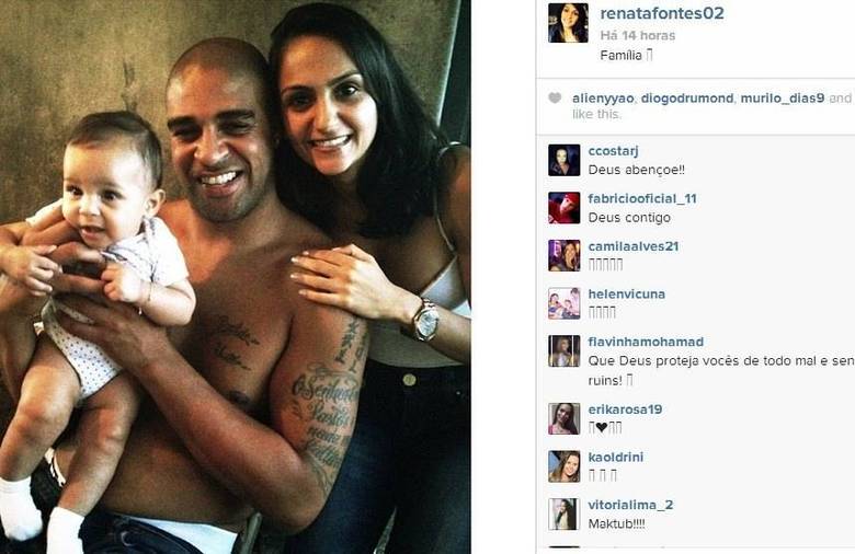 Na semana passada, a estudante Renata Fontes deixou uma dúvida no ar sobre sua atual relação com Adriano Imperador. A morena postou uma foto em que aparece ao lado do atacante e da filha do casal, a pequena Lara, e escreveu "família" na legenda da imagem