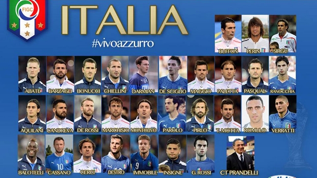 Defesas: Abate (Milan-ITA) , Barzagli (Juventus-ITA) , Bonucci (Juventus-ITA) , Chiellini (Juventus-ITA) , Darmian (Torino-ITA) , De Sciglio (Milan-ITA) , Maggio (Napoli-ITA) , Paletta (Parma-ITA) , Pasqual (Fiorentina-ITA) e Ranocchia ( Inter de Milão-ITA)