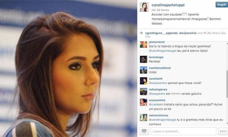 Carolina Portaluppi não deixa o Grêmio para trás. A filha do ídolo tricolor, Renato Gaúcho, publicou nesta segunda-feira (12) uma foto com a camisa do time do coração e escreveu "acordei com saudades". E claro, recebeu diversos elogios dos torcedores na sua conta do Instagram. Será que ela está voltando para o sul?